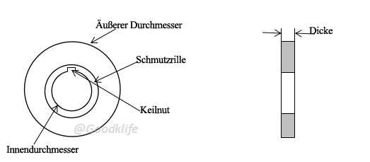 B. Außendurchmesser: Mehr als das 40-fache der Dicke des Schneidblechs.