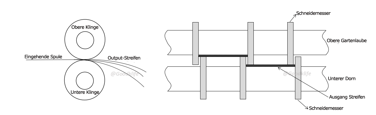 Das Funktionsprinzip der Längsschneidemaschine und die schematische Darstellung der Längsschneidemessereinrichtung